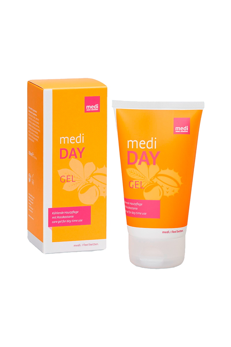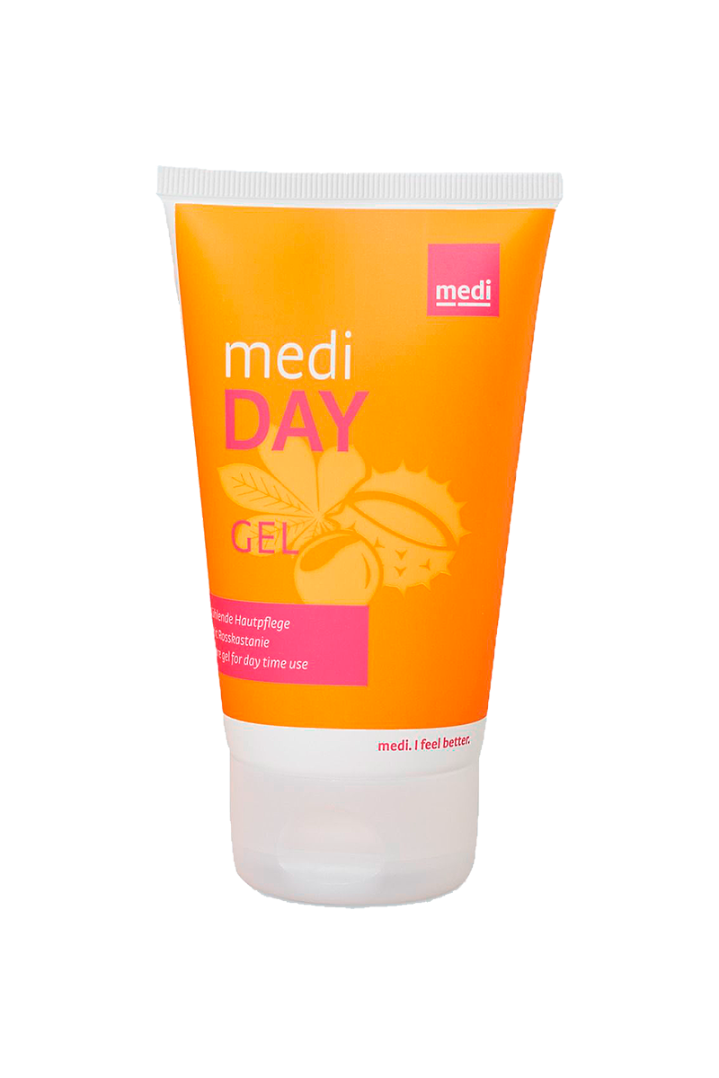 Ежедневно перед надеванием втирайте medi day легкими движениями. Живительный уход за кожей обеспечивает комфорт при использовании компрессионных чулок. Гель придает ощущение свежести в течение дня, снижает чувство напряжения и гиперчувствительность кожи. medi day gel содержит конский каштан, который укрепляет стенки сосудов, а освежающий ментол и гамамелис стабилизируют структуру тканей.